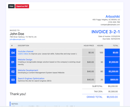 Invoice with company info and description
